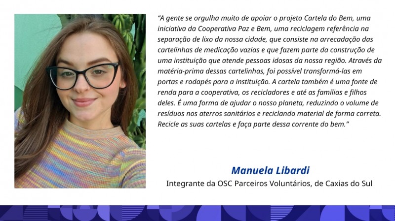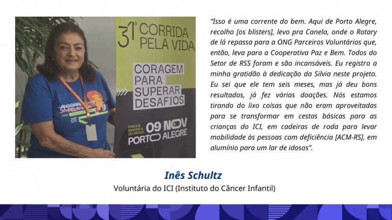 A estruturação da iniciativa “Juntos por um Futuro Sustentável” nasceu da experiência voluntária de três personagens muito importantes para o êxito do projeto que, mesmo em pouco tempo de atuação, já foi um dos finalistas do Prêmio ODS RS 2025 - 2ª Edição. A funcionária do Setor de RSS Silvia Brandão foi quem persistiu, desde 2018, com a ideia de desenvolver uma ação desse tipo. Além dela, Inês Schultz, que é voluntária do ICI, e Nilson Fernandes, funcionário da Procergs há 31 anos, completam o trio de pessoas decisivas para que o Setor de RSS da Procergs formalizasse um projeto de reciclagem como o JFS. Inês faz a conexão com as três instituições que recebem os materiais coletados e Nilson, voluntário da causa ambiental há anos, trouxe de casa para a empresa o saudável hábito de reciclar.