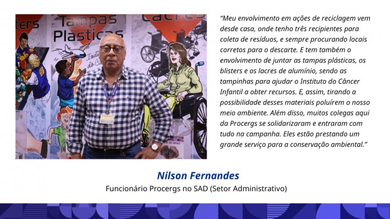 “A sustentabilidade pressupõe justiça social para as gerações atuais e futuras. Nosso objetivo é demonstrar que a Procergs é uma empresa socialmente responsável, comprometida com o equilíbrio entre desenvolvimento, justiça social e preservação ambiental. Então, é fundamental pautar a questão ambiental dentro da empresa, na mesma proporção em que se pensa na saúde do trabalhador, priorizando sempre a sustentabilidade”, destaca Assis sobre a dinâmica que envolve as ações de seu setor.